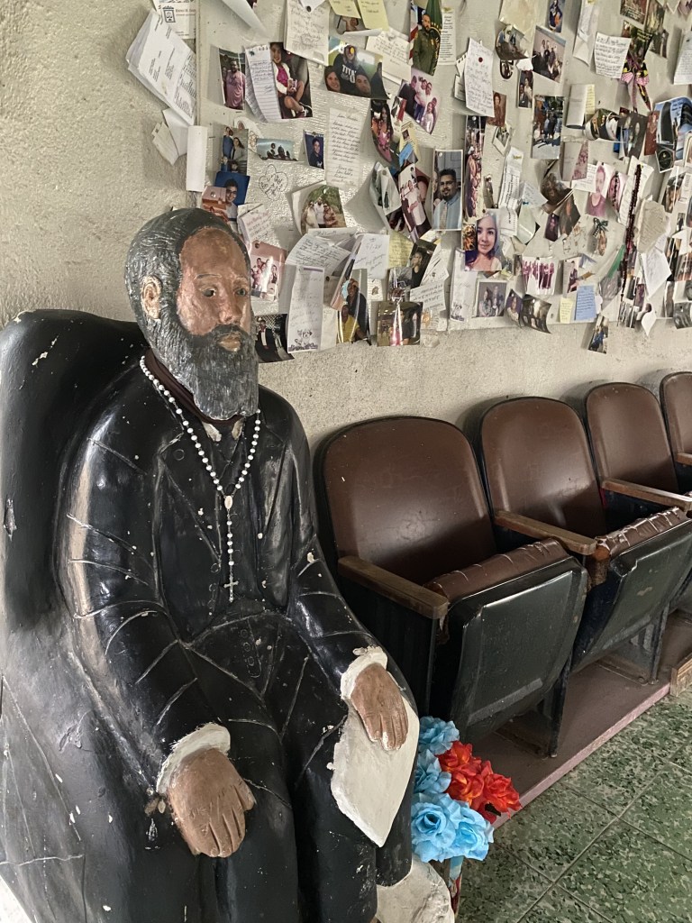 Inside the shire, there is wall space dedicated to posting photos of loved ones. People have even posted items like sandals and hair strands to the wall. People petition for healing miracles by pinning such items along with handwritten notes.